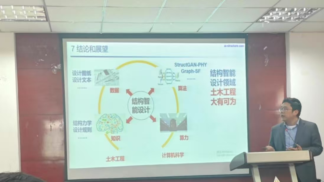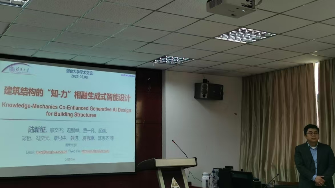 2025年5月6日下午,清华大学土木工程系教授、防灾减灾工程研究所所长陆新征在太阳集团tcy8722土木馆A304作题为《建筑结构“知−力”相融生成式智能设计》的学术报告。作为工程力学领域权威专家,陆教授系统阐述了人工智能技术在建筑结构设计中的创新应用与发展前景。