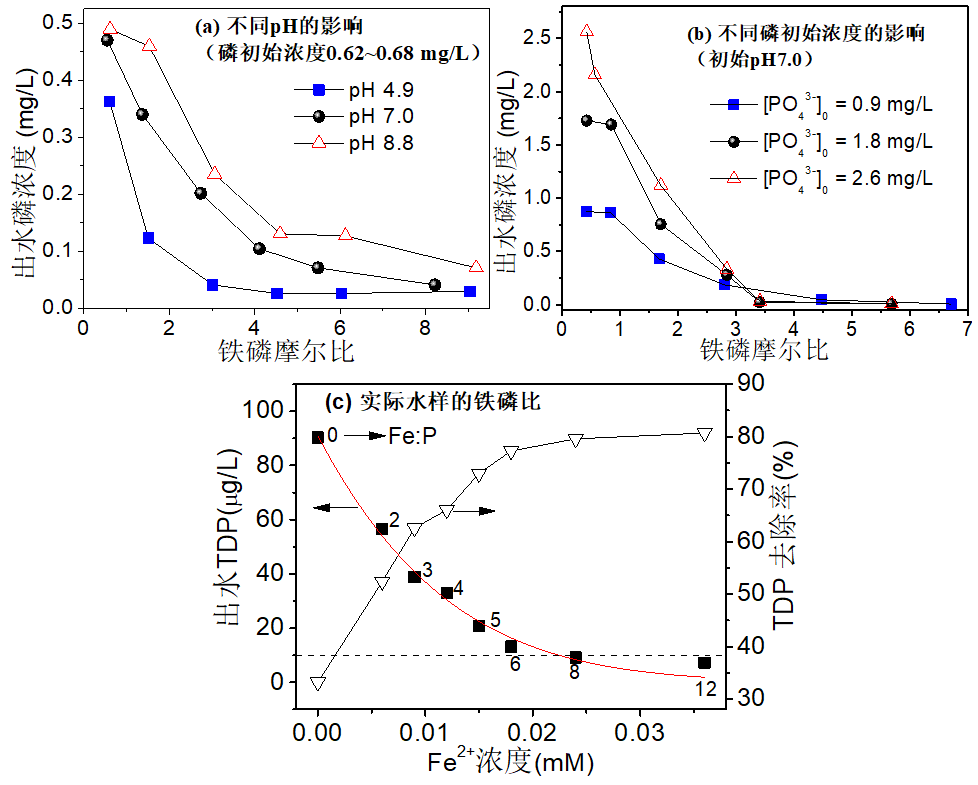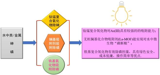 富营养化是一个全球性的重大水环境问题,湖泊水库等水源地常因富营养化问题,导致藻类大量繁殖,引起水质下降,威胁到饮用水水质安全。含磷污水排放是造成水体富营养化的重要原因之一,当前,我国污水厂面临着一级A排放标准升级改造,现有污水处理厂二级出水中的磷往往难以达标排放。磷是引起富营养化的主要限制性因子,若能有效降低水中磷的浓度,就有可能控制富营养化的发生。纳米铁氧化物吸附剂具有比表面积大、活性位点多和量子尺寸效应等诸多优点,绿色低廉高效,广泛用于水处理工艺中,为此,我们基于除磷控藻理念,针对复合金属氧化物吸附去除水中多种藻类有效态磷(正磷酸盐、有机态磷酸盐等)及其中试除磷控藻开展了一系列研究。