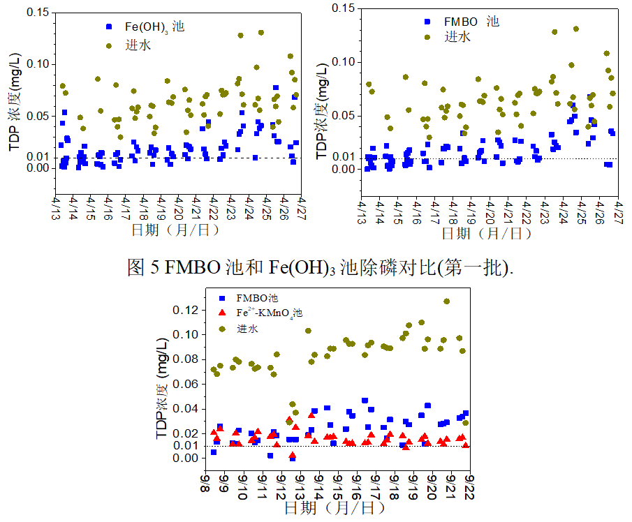 图6 FMBO池和Fe2+-KMnO4池除磷对比(第二批) .