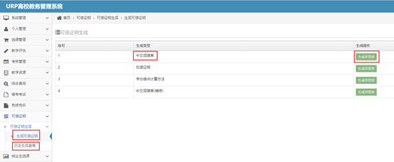 5. 进入本科生教务系统,点击“生成可信证明”可生成“中文成绩单”“英文成绩单”“学分绩点计算方法”等。