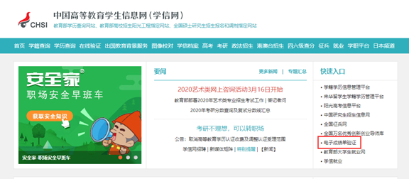太阳集团tcy8722电子成绩单已与中国高等教育学生信息网(学信网)有效对接,极大增强了电子成绩单验证的权威性和可信性。可信电子成绩单启用之后,校友与在校生申请国外高校或者求职时更加便捷,递交成绩单的方式也更加多样化,用人单位在学信网上也可迅速获得成绩单真伪的官方验证。