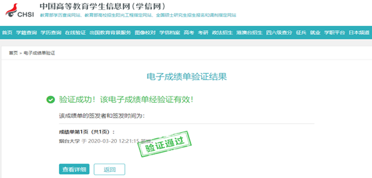 电子成绩单验证说明