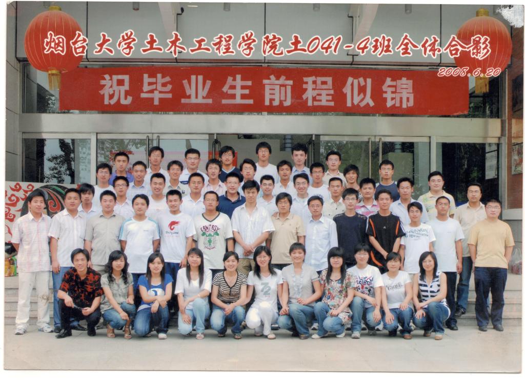 左起第一排:(均是土木学院老师)陈慧,于玲玲,李强,宋华山,董燕,刘蕾,邵永波,王志强(学院党总支副书记),曲淑英(学院副院长),张廷国(学院党总支书记),周新刚(学院院长),刘津明(学院副院长),范云,汪英珍,俞良群,吕玉匣,王心健,辛翠香
